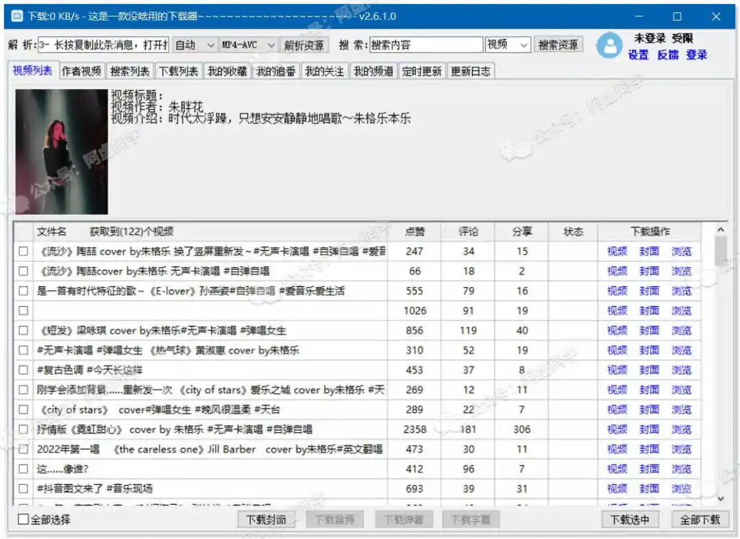 软件牛逼地方在于,不仅支持的平台全,还支持批量下载!比如抖音,你只需要将UP主的主页链接放到软件里进行解析,即可轻松对其所有的视频进行批量下载