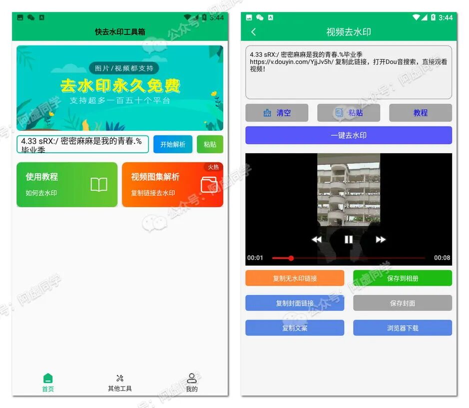 快去水印工具箱APP仅需微信登录即可使用,APP内没有任何广告/会员机制,并且据悉_支持150多个平台_去水印下载