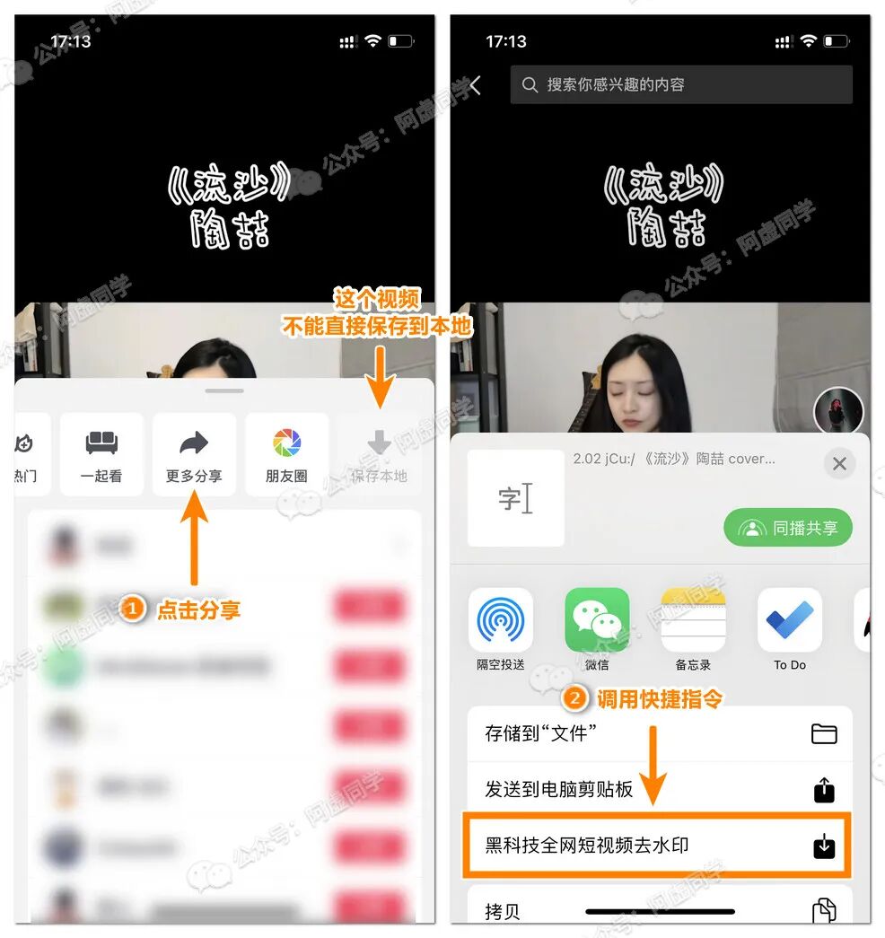 你无需复制视频链接之后再打开APP、网站、小程序啥的解析后下载,你直接在抖音等视频APP中点击分享,然后在分享菜单页就能快速调用快捷指令